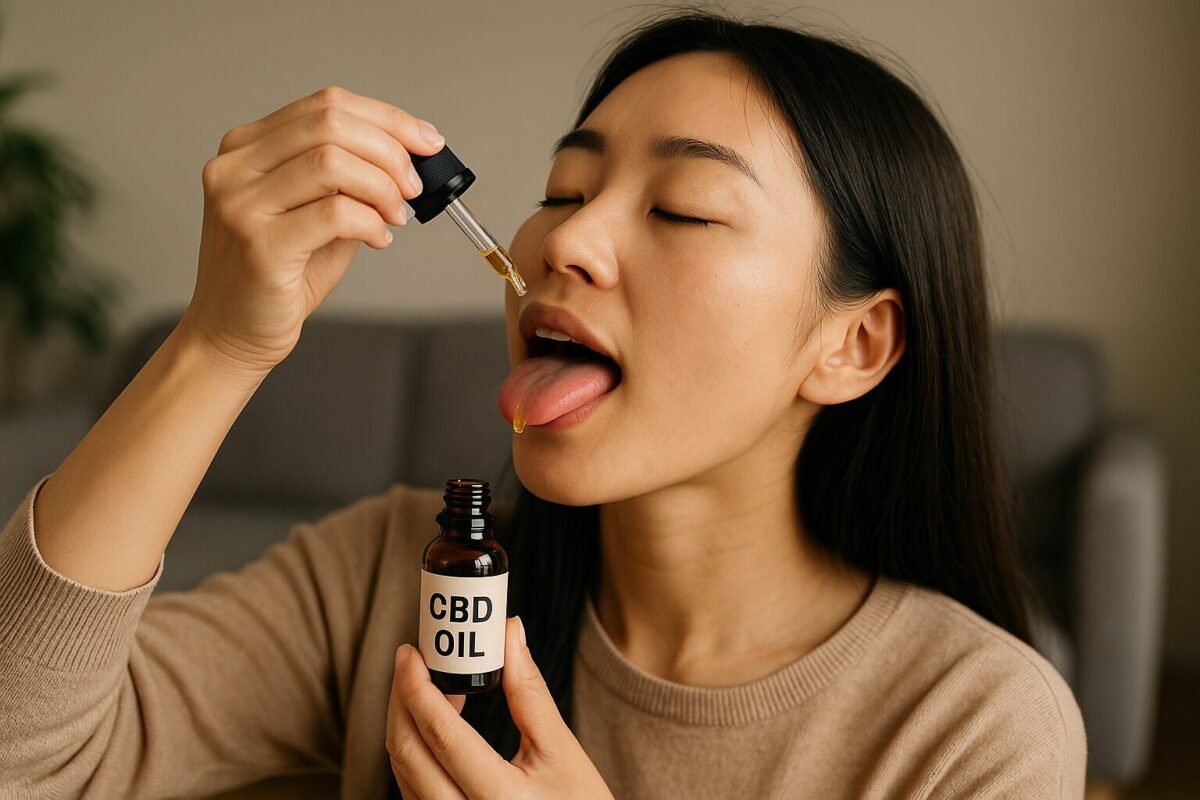 舌下にCBDオイルを垂らす